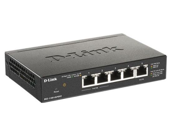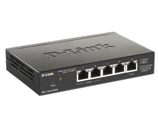 Коммутатор D-Link DGS-1100-05PDV2/A1A, with 4 ports 10/100/1000Base-T and 1 port 10/100/1000Base-T PD (2 PoE ports 802.3af (15,4 W)