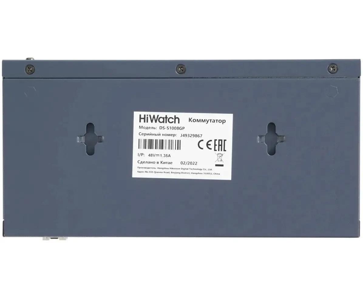Коммутатор неуправляемый HiWatch DS-S1008GP 8x100Мбит/с 2x1Гбит/с 58W