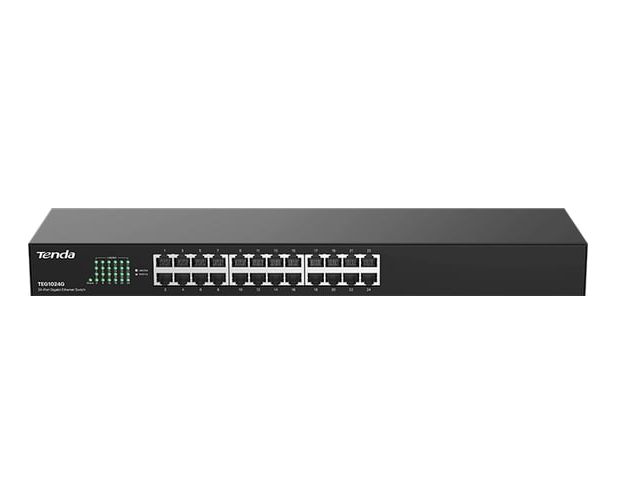 Коммутатор неуправляемый Tenda TEG1024G, 24 порта, 24x1Гбит/с, установка в стойку, металлический корпус