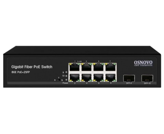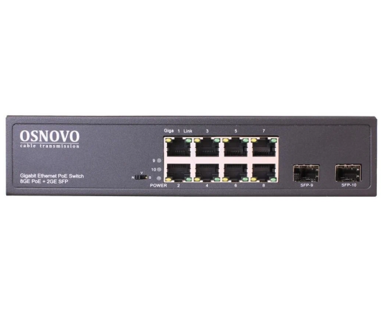 Коммутатор OSNOVO (SW-80802(150W)) Гигабитный PoE на 10 портов, 8 *10/100/1000 Base-T PoE, 2*SFP 1000 Base-T, PoE на порт до 30W, суммарно до 150W