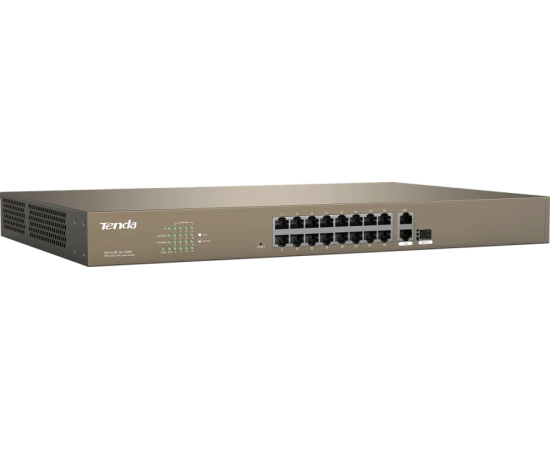 Коммутатор управляемый PoE Tenda TEF1218P-16-250W 18 портов, 16х100Мбит/с, 2x1Гбит/с, SFP 1x1Гбит/с