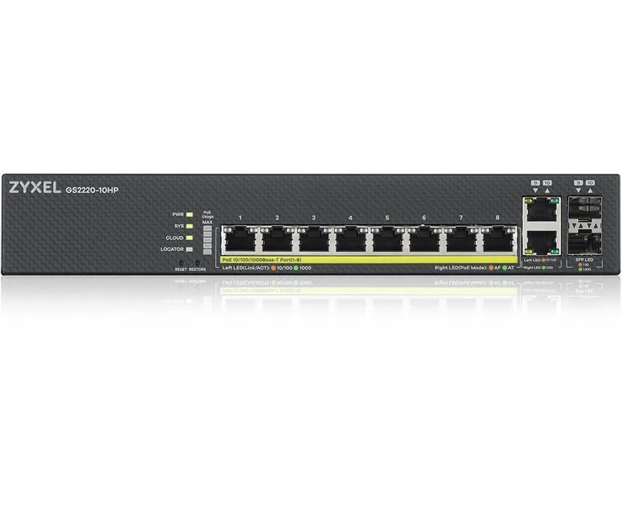 Коммутатор Zyxel NebulaFlex Pro GS2220-10HP (GS2220-10HP-EU0101F) 10G 8PoE+ 180W управляемый
