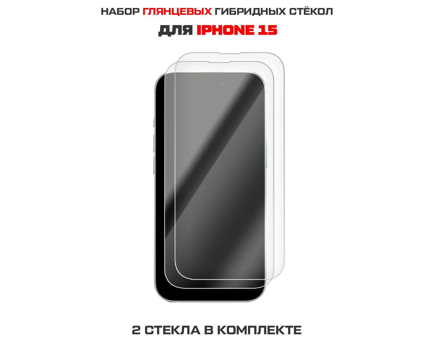 Комплект из 2-х защитных гибридных стекол Krutoff для iPhone 15