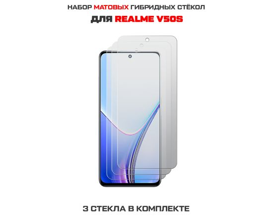 Комплект из 3-х защитных гибридных стекол МАТОВЫХ Krutoff для Realme V50s