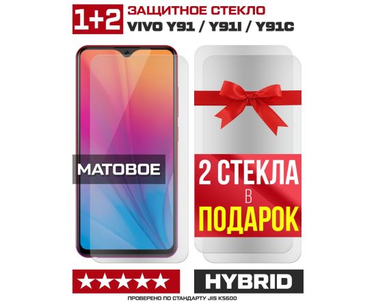 Комплект из 3-x защитных гибридных стекол МАТОВЫХ Krutoff для Vivo Y91/Y91i/Y91C