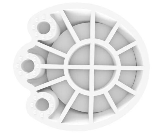 Конструкция с рёбрами жёсткости эффективно поглощает вибрацию, а также равномерно распределяет нагрузку на пол. Благодаря рельефной поверхности лапок ножки техники не скользят.