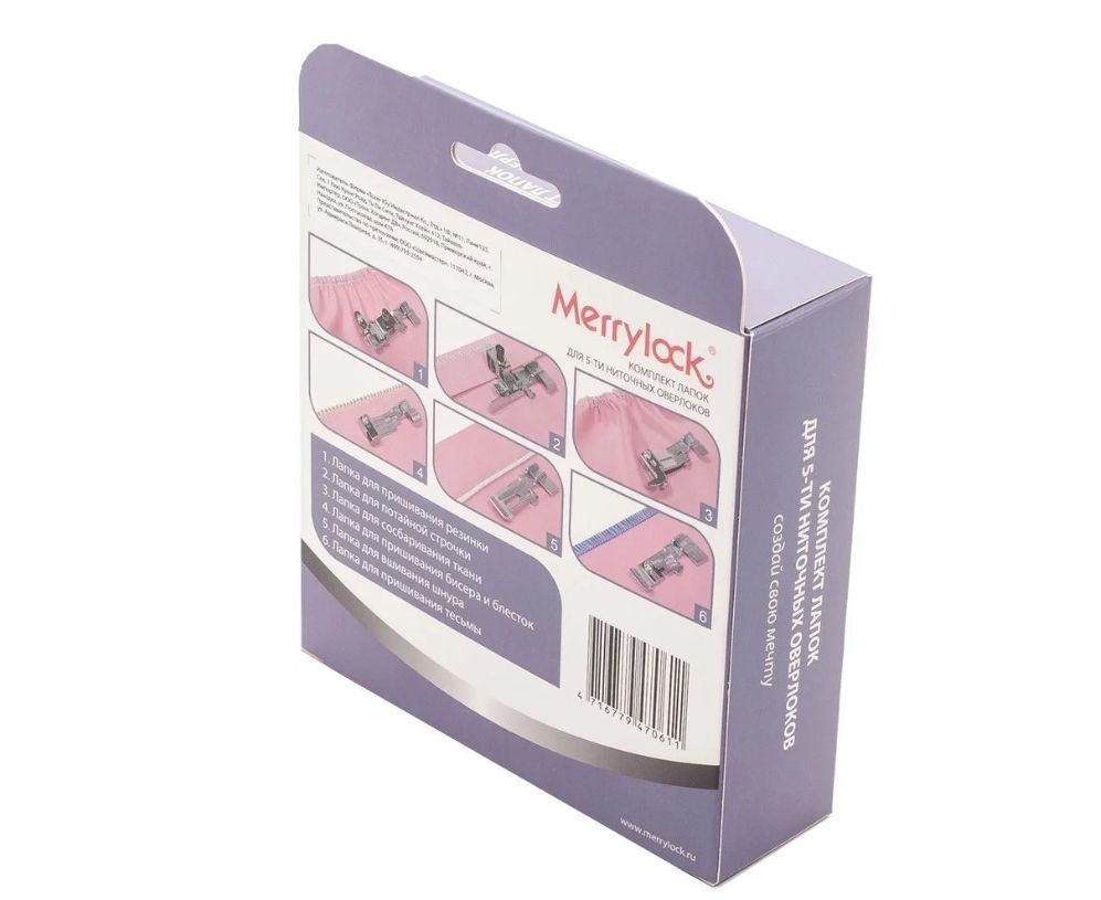 Набор из 6-ти лапок Merrylock для 5-ниточного оверлока. Комплект включает в себя:
