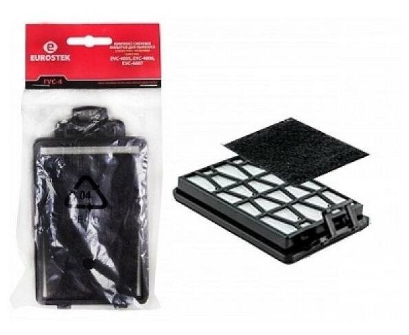Набор фильтров для пылесоса Eurostek FVC-4 - необходимый комплект аксессуаров для пылесоса, состоящий из внутреннего фильтра (спонж) и внешнего HEPA-фильтра, которые способны удерживать мельчайшие частички пыли и обеспечивать чистый воздух при уборке помещения.* Все элементы набора выполнены из качественных материалов.* Набор подходит для пылесосов Eurostek EVC-4005 / EVC-4006 / EVC-4007. EVC-KP03B, EVC-KP04B* Фильтры выполнены под конкретную модель, что гарантирует полную совместимость при их установке. Своевременная смена фильтров позволяет продлить срок службы пылесоса и улучшить качество уборки.