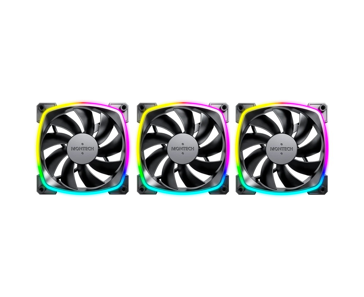 Комплект вентиляторов (3 шт.) Montech AX120 PWM Black (AX120B3P) / 120mm, 4pin PWM, 3pin ARGB, 800-1600RPM, 59.0CFM, 27.0dBA, Rifle bearing