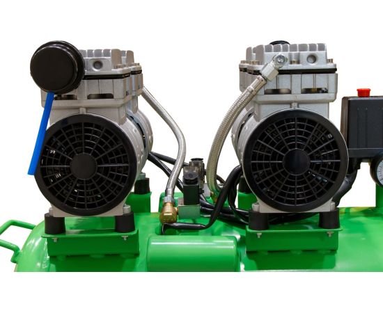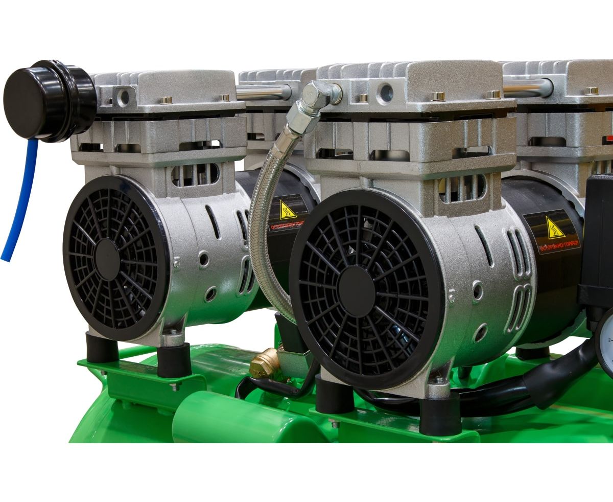 Благодаря прямому приводу, компрессор имеет низкую степень шума и вибрации и минимальную потребность в обслуживании. Для использования компрессора не требуется заливки масла.