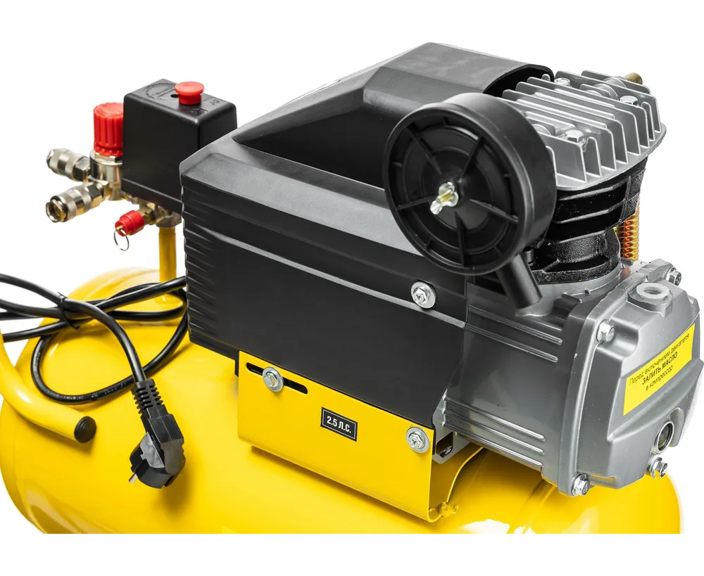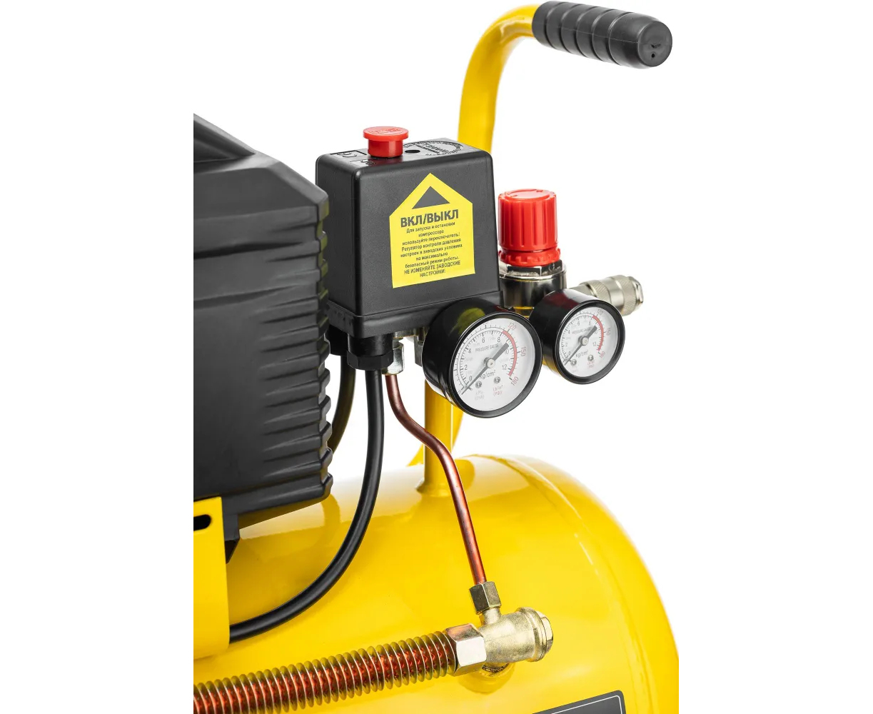 -емкость ресивера 24 л обеспечивает достаточный запас воздуха для продолжительной работы без перезапуска;