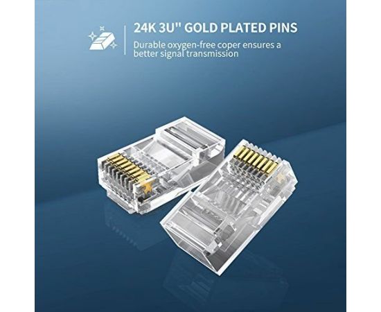 Коннектор UGREEN NW110 20331 RJ45 Network Connector for UTP Cat 5, Cat 5e 50pcs Transparent
