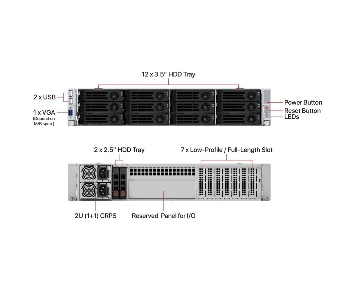Корпус Ablecom CS-R29-04P 2U chassis, E-ATX, ATX, Micro-ATX, Mini-ITX MBs, 12 x 3.5'' hs + 2 2.5'' rear, 1200W CRPS(1+1), no rails