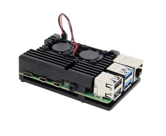 Совместимость с одноплатными микрокомпьютерами Raspberry PI 4B. Состоит из двух частей, крепящихся снизу и сверху на плате микрокомпьютера. Два предустановленных вентилятора