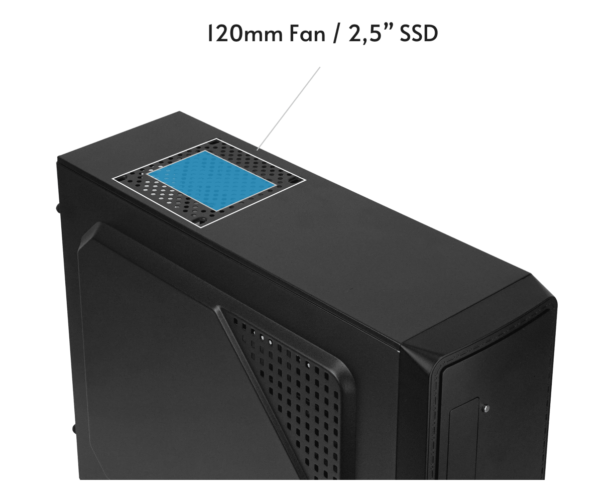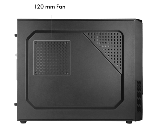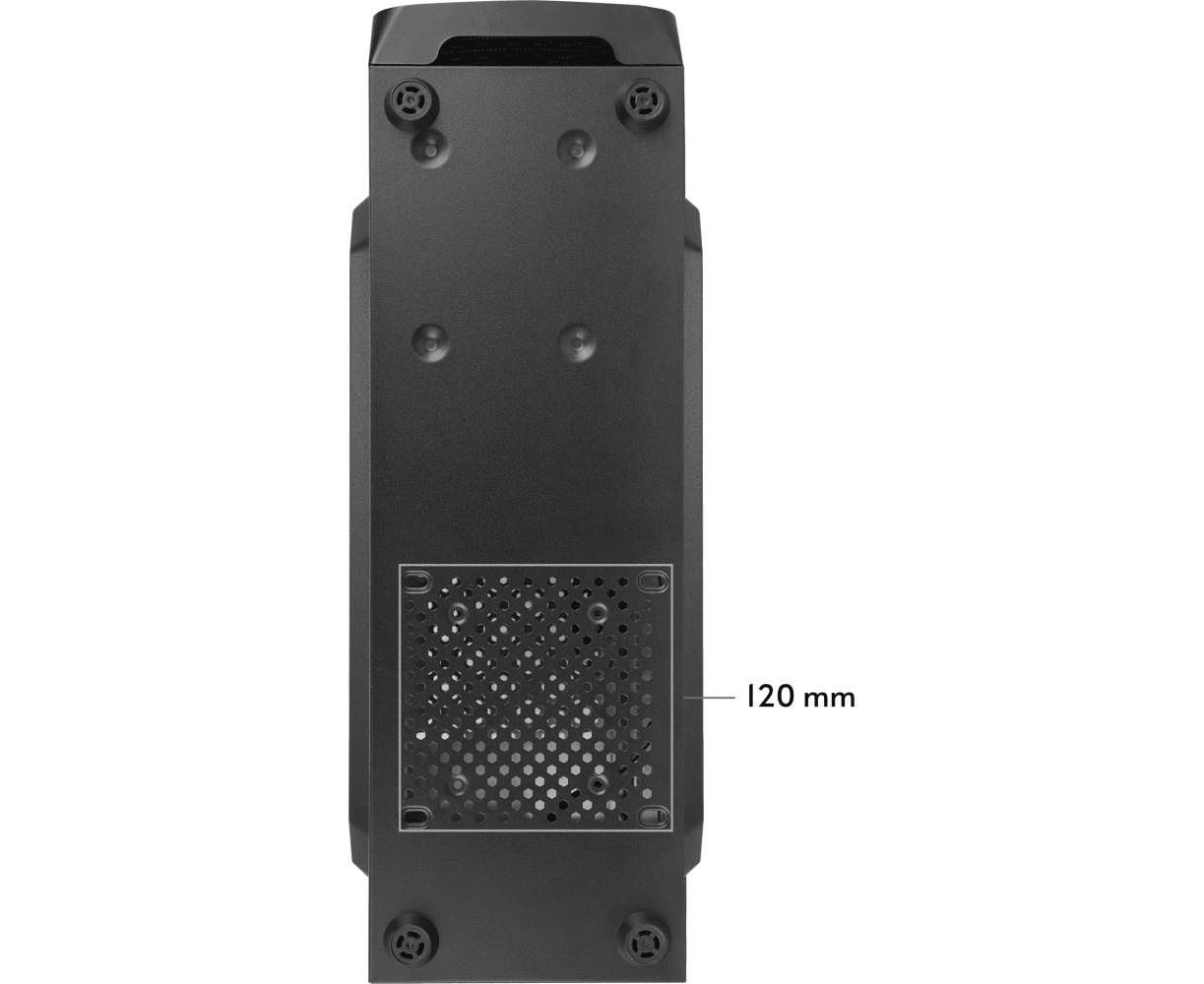 120 мм на верхней панели, 120 мм на боковой панели, 2 x 60 мм на задней панели, 120 мм на нижней панели