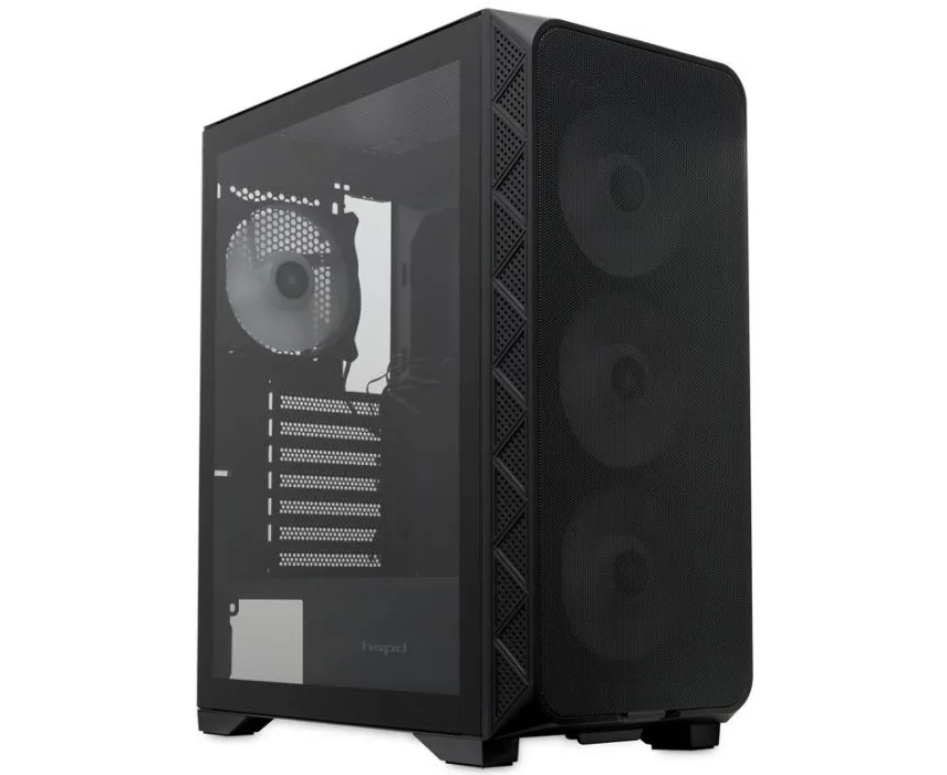 Корпус HSPD M521 (M521-TGBK-ARGB), Mesh Mid Tower, Black, slide TG, 0.45 SPCC, 4x120mm ARGB ATX