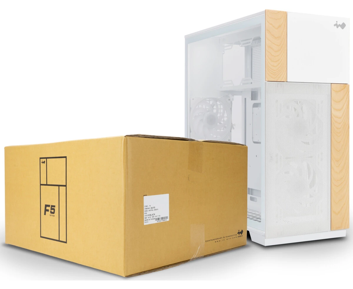 Корпус In-Win F5 (IW-CS-F5WHI-3AN140P), без БП, Full-Tower, TG, 3x140mm ARGB, 2xUSB-A 3.0 + 1xUSB-C 3.2, E-ATX, ATX, mITX White