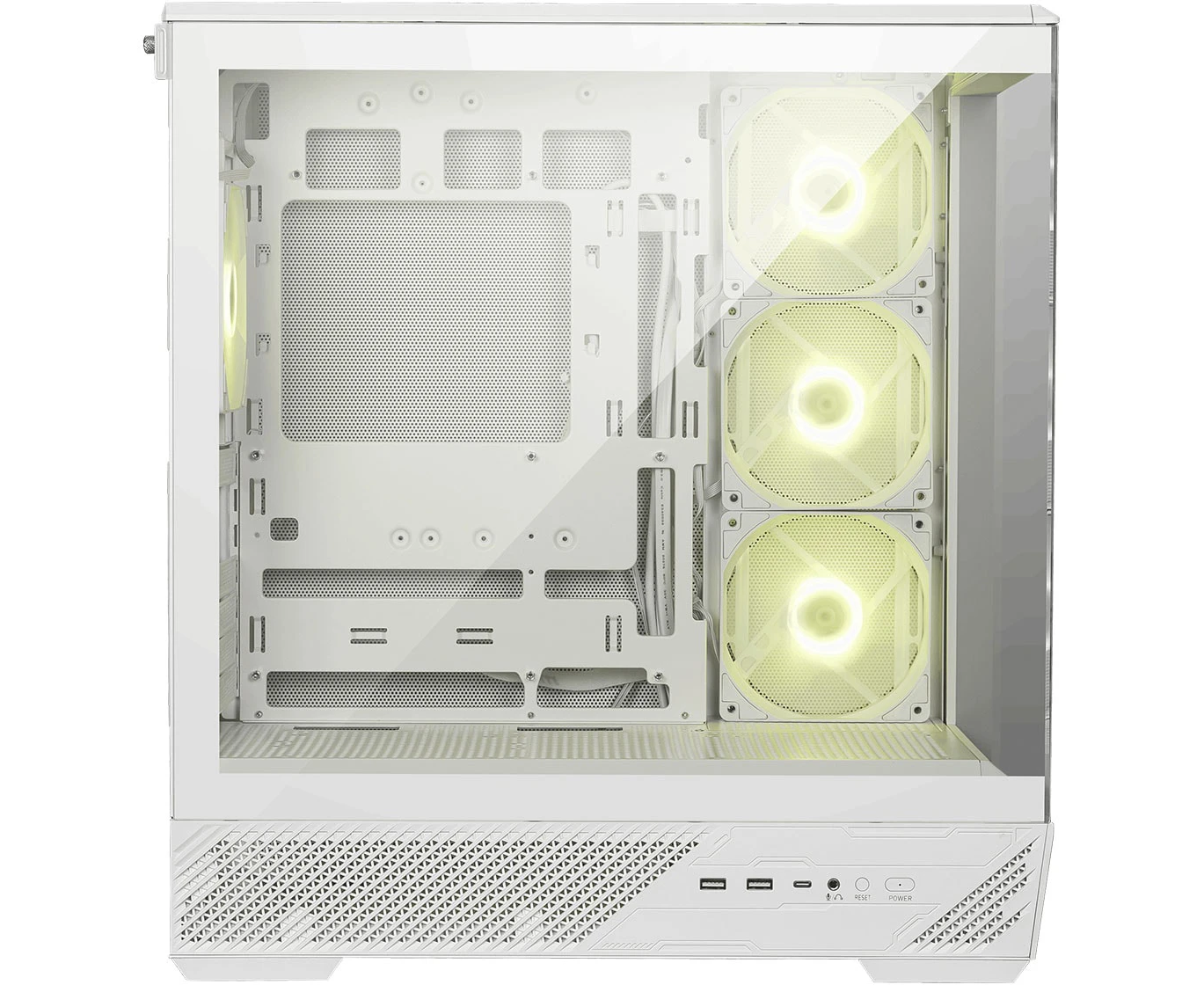 Корпус MSI Mag Pano 130R PZ White (306-7G32W21-HH9) 2xUSB 3.2 Gen 1, 1xUSB 3.2 Gen2 Type-C, 3x120mm ARGB Reverse Blade Fan, 1x120mm ARGB Fan