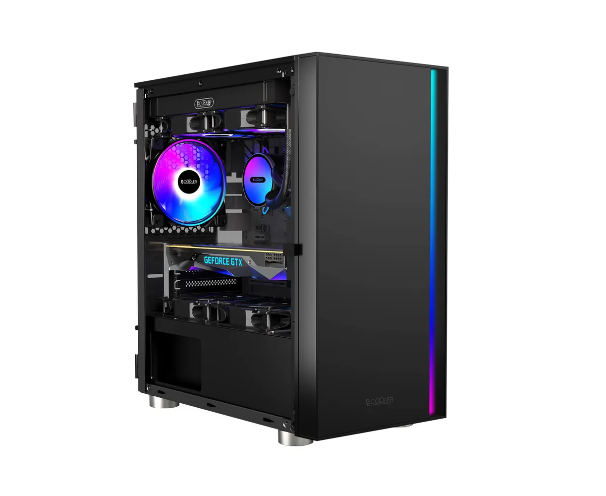 Корпус PcCooler LM300 ARGB BK, без БП, Flat Mid Tower, Black, TG, 0.45 SPCC, 1x120mm mATX, mITX 170/330/150mm 2x2.5", 5xPCI 1xUSB-A 3.0,
