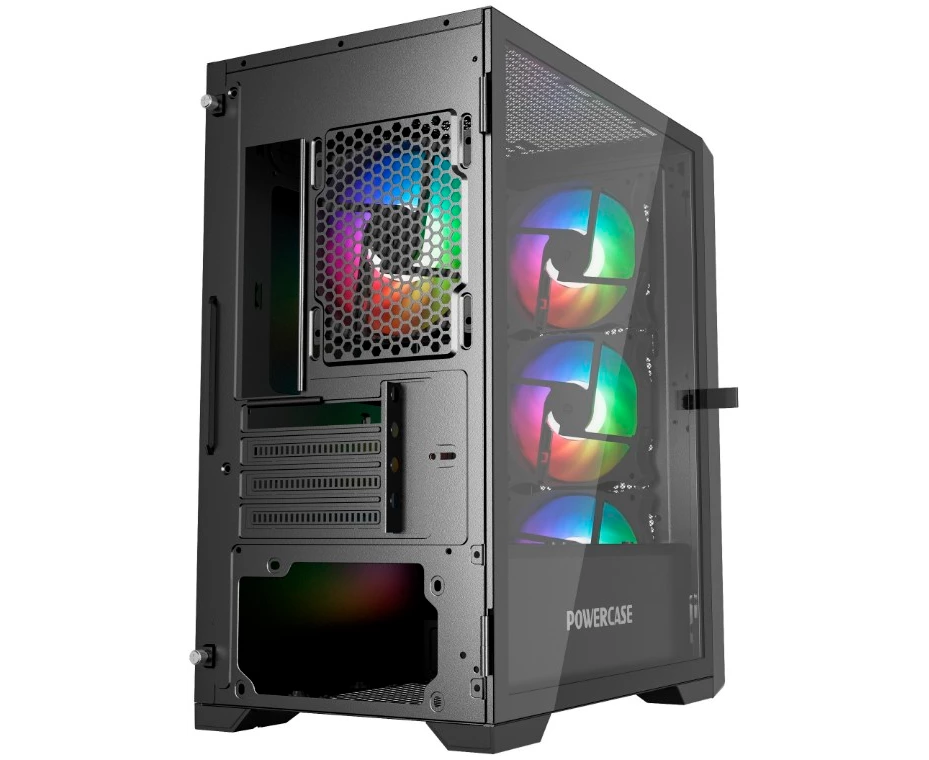Корпус Powercase Alisio Micro X4B V2 (CAMCXB-A4), Tempered Glass, 4х 120mm ARGB fans, ARGB HUB, чёрный, mATX