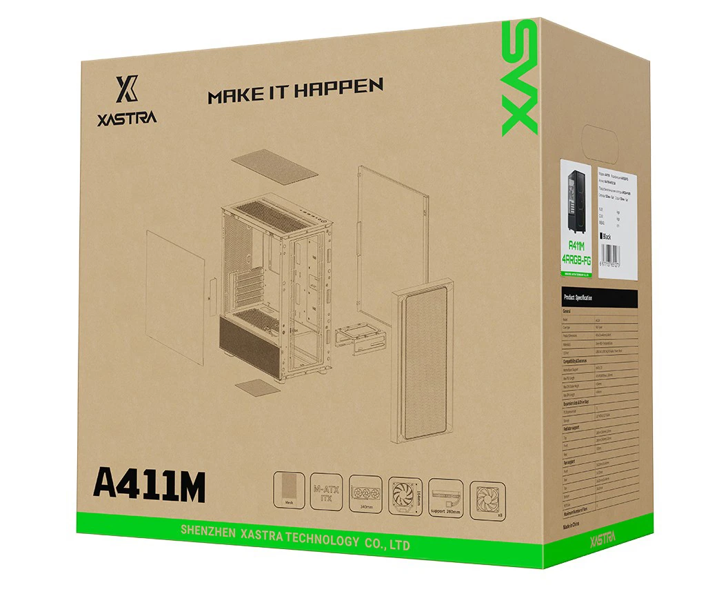Корпус XASTRA A411M 4ARGB-FC Black (A411M-4FC12A) mATX/Mesh /ScrewlessTG+mesh panel/ 4x120mm ARGB PWM FC fans