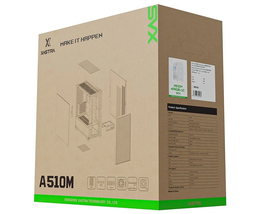 Корпус XASTRA A510M 4ARGB-UC White (A510M-4FC12A-UC-WH) mATX/Mesh/ Screwless full-size TG /4x 120mm FC120 ARGB PWM fans/ Type-C