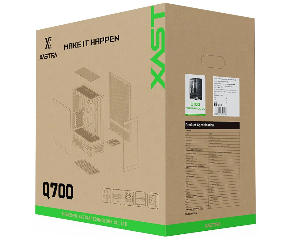 Корпус XASTRA Q700 7ARGB-FG-C10-UC Black (Q700-7FG12A-C10-UC) ATX/Aquarium/Screewless/7x120mm ARGB PWM FG fans/Argb+PWM HUB 10port/Type C