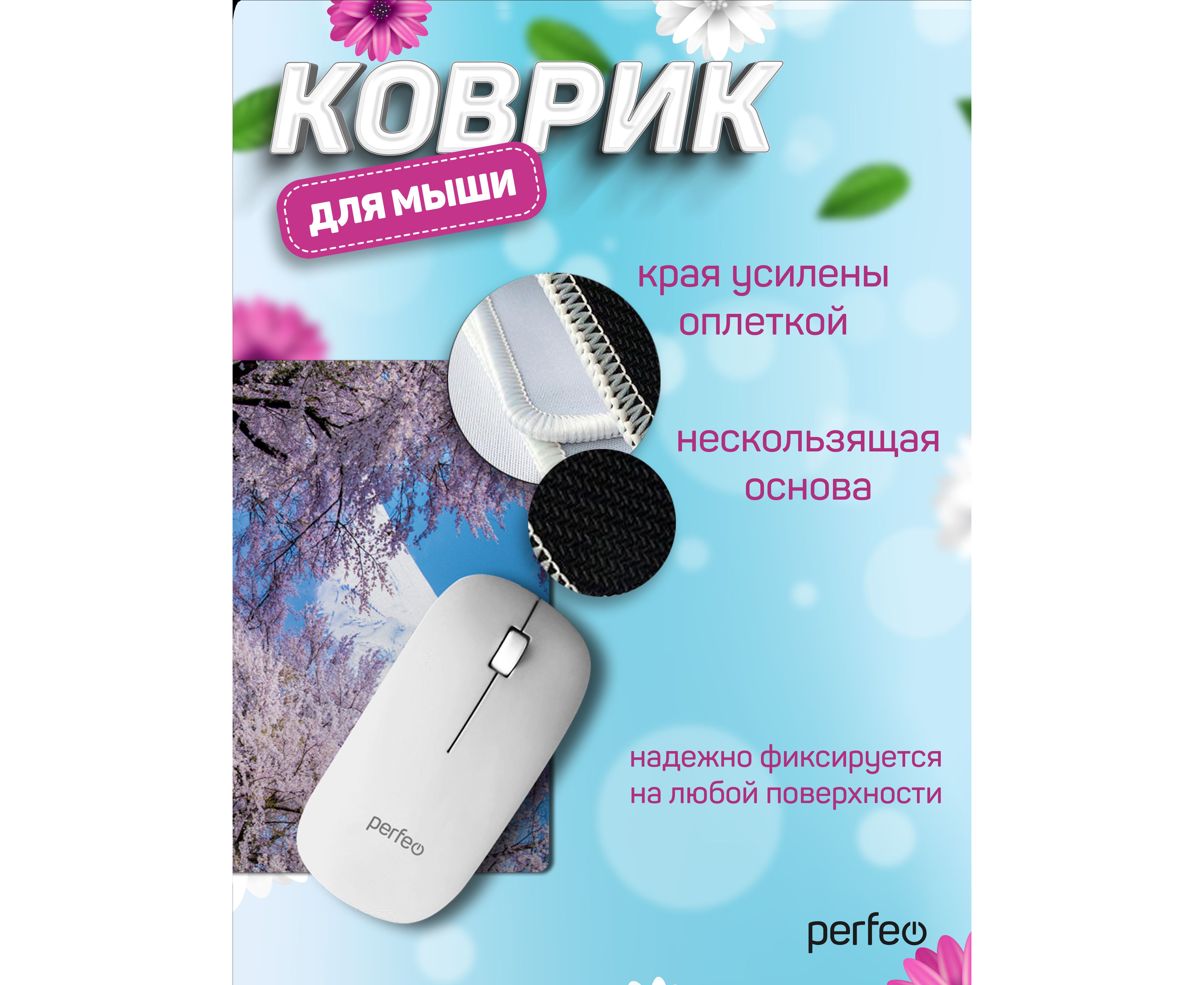 Коврик для компьютерной мыши Perfeo "Времена года", "Весна", (180*220*2 мм),ткань+рез. основание