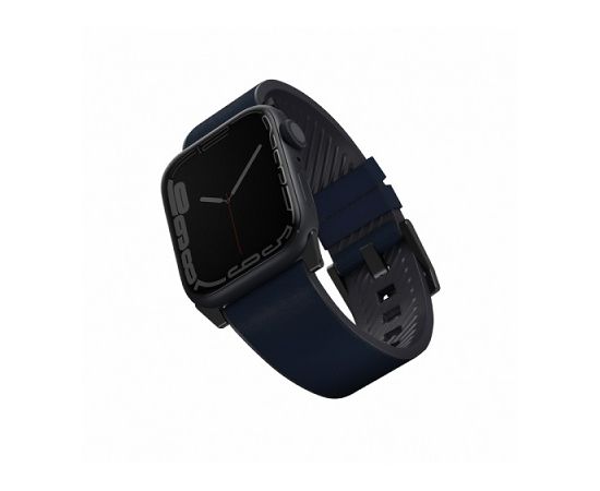 Кожаный влагоустойчивый ремень Uniq STRADEN для Apple Watch 49/45/44/42мм, цвет синий (45MM-STRABLU)