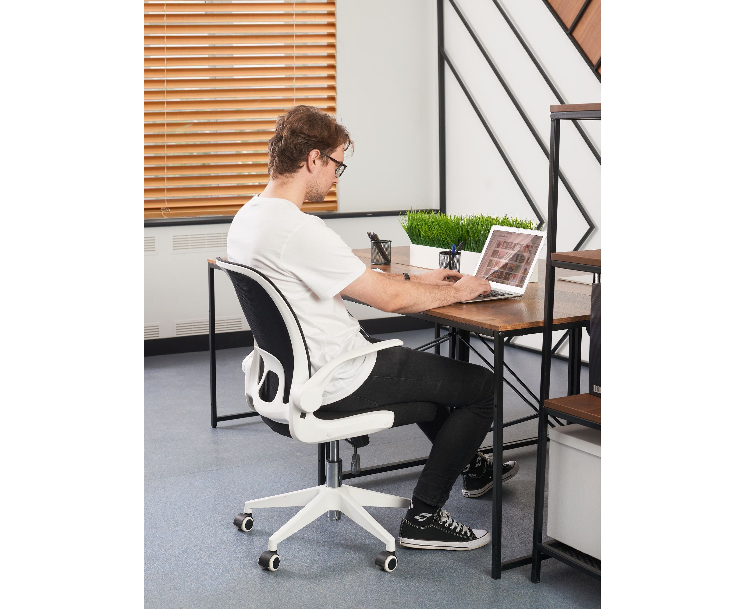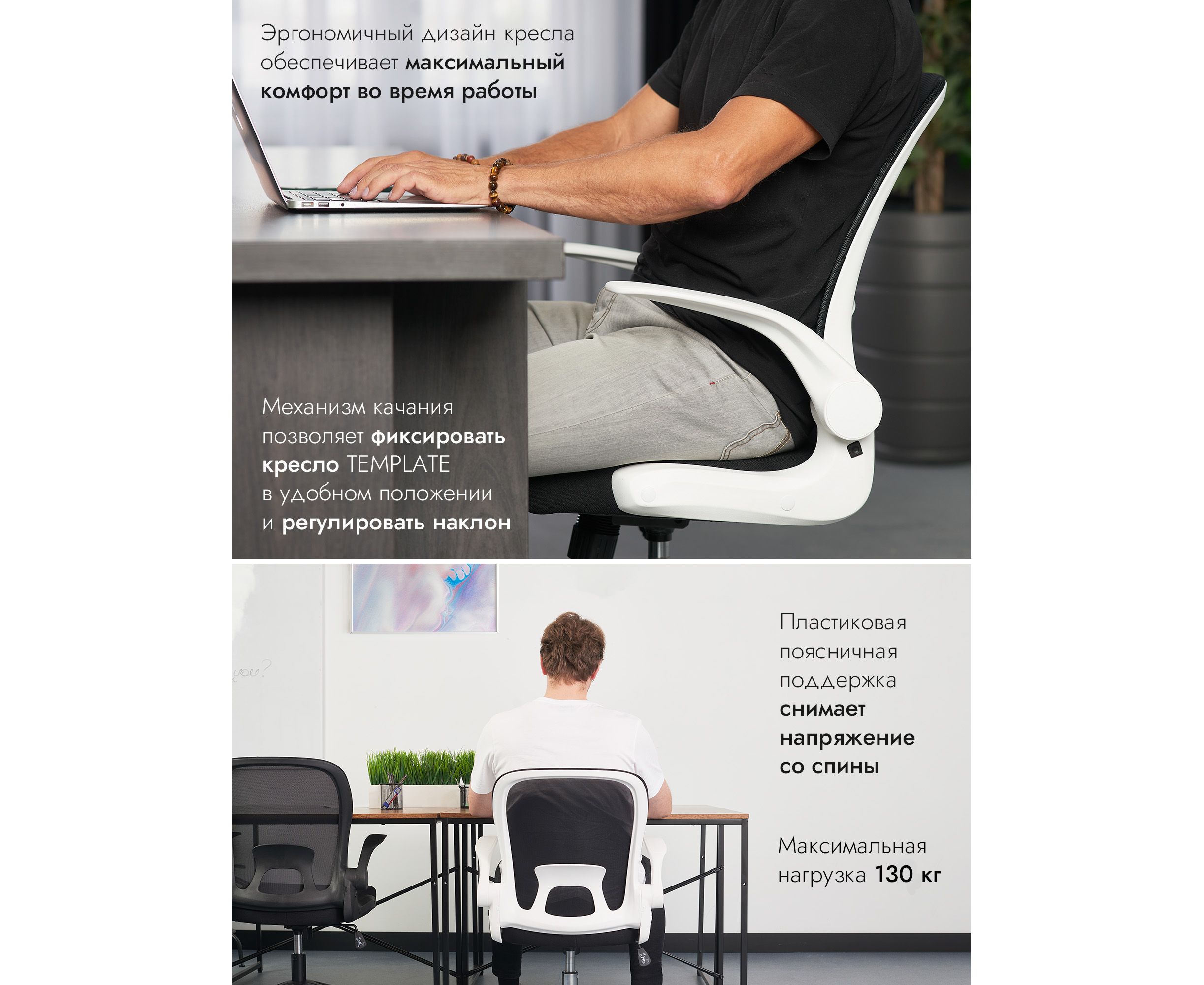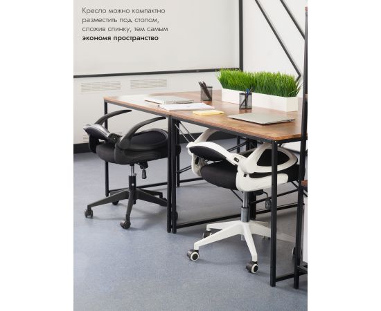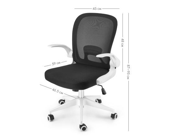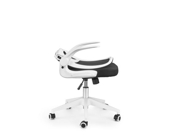 Loftyhome Template VC6007 black/white – удобное и элегантное кресло чёрного цвета с белыми подлокотниками, которое отлично подойдёт не только для обустройства офисного интерьера, но и станет хорошим дополнением домашнего кабинета или детской комнаты. Складная сетчатая спинка пропускает воздух и обеспечивает комфортную поддержку спины. Обивка сиденья выполнена из прочной износостойкой мебельной ткани. Есть возможность регулировать угол наклона пластиковых подлокотников. Сиденье регулируется по высоте, механизм регулировки надёжен и обладает высоким запасом прочности. В основе конструкции крепкая пластиковая крестовина белого цвета, которая выгодно контрастирует с чёрным цветом сиденья и спинки. Кресло выдерживает нагрузку до 130 килограммов. Пластиковые ролики подходят для использования на паркете и ламинате.
