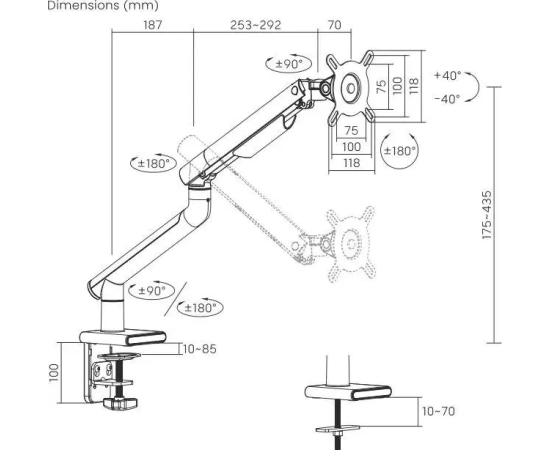 Настольный кронштейн для монитора с системой газ-лифт. Встроенная система организации кабелей поможет для организованного и аккуратного рабочего пространства.