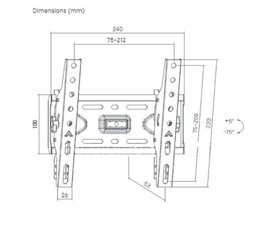 Наклон-15° (вниз) / +5° (вверх)