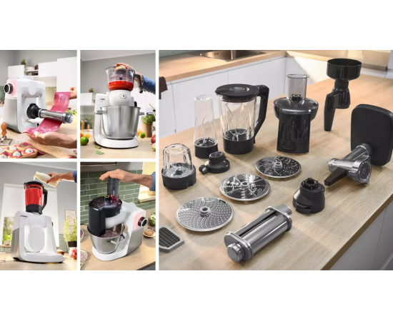 Кухонный комбайн 1600 Вт Белый, Матовая нержавеющая сталь