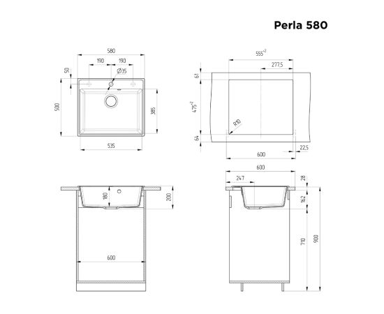 Кухонная мойка MAUNFELD Perla 580 MFQS-580DGR темно-серый