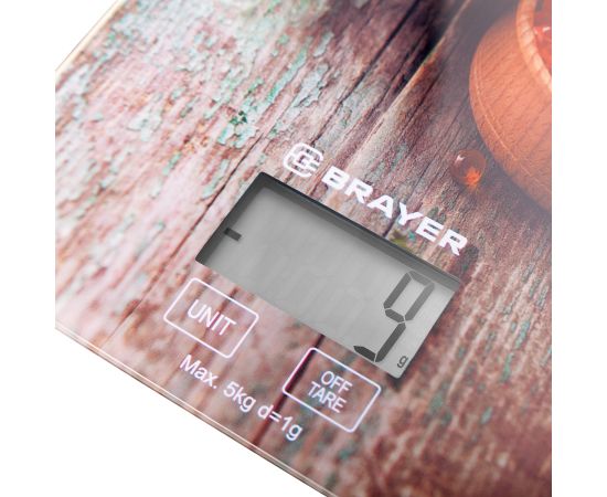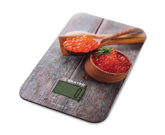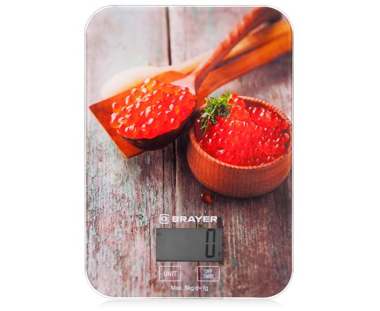 Кухонные весы BRAYER BR1800, вес до 5 кг, разм. 20*14,5 см толщ.стек 3 мм, дисп 45.5*23 мм,1*CR2032