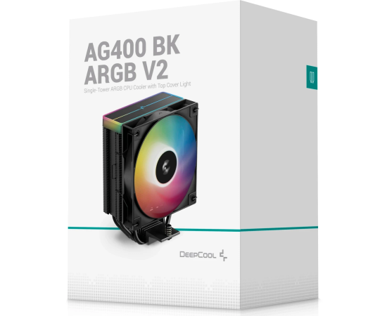 Кулер DEEPCOOL AG400 BK ARGB V2 LGA1851/1700/1200/115X/AM5/AM4 (TDP 220W, PWM, ARGB Fan 120mm, 4 тепл. трубки, черный) Ret