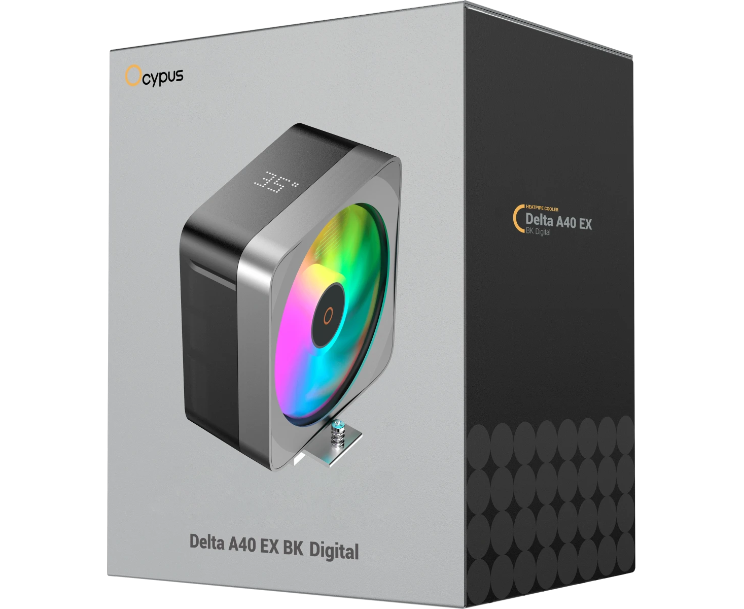Кулер Ocypus Delta A40 EX BK Digital, 120mm ARGB Fan, Top Display Panel, 4 Heat Pipes, 4-PIN PWM, 500-1800 RPM, 29DBA, Hydro Bearing