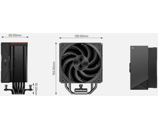 Кулер PcCooler RZ500 BK (250W, 4-pin PWM, 155mm, Al/Cu, 5x6mm, 1x120mm, 86.73CFM, 32dBA, 2200RPM)