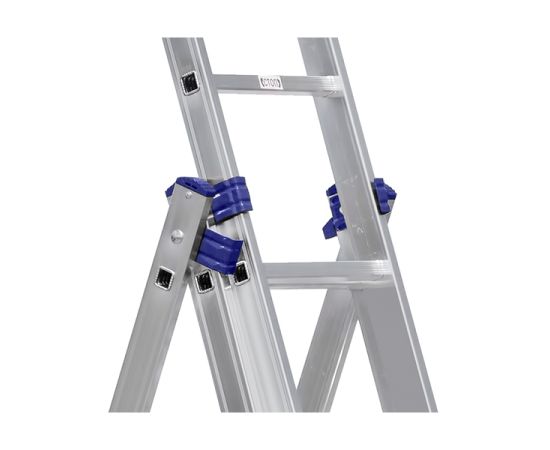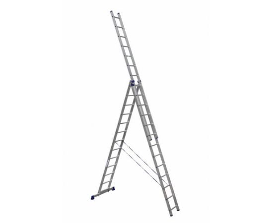 Трехсекционная универсальная алюминиевая лестница Алюмет Серия H3 5313 - это многофункциональное приспособление для разных работ. Может использоваться в приставном варианте, как двухсекционная лестница, а так же в качестве стремянки и в виде раздвижной, телескопической конструкции. Комплектуется страховочными ремешками, что повышает безопасность работ. Двухкомпонентные наконечники, которыми оснащены опоры, защищают лестницу от скольжения во время работы.