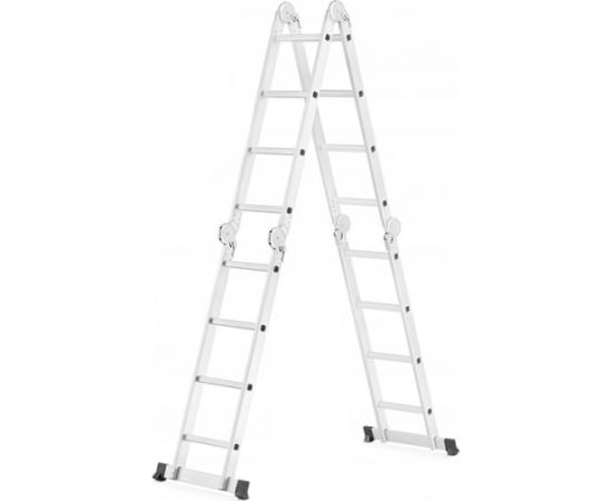 Лестница-трансформер REXANT 4x4 12-5074 повышенной прочности при небольшом весе обладает надежностью и высоким уровнем удобства во время использования.