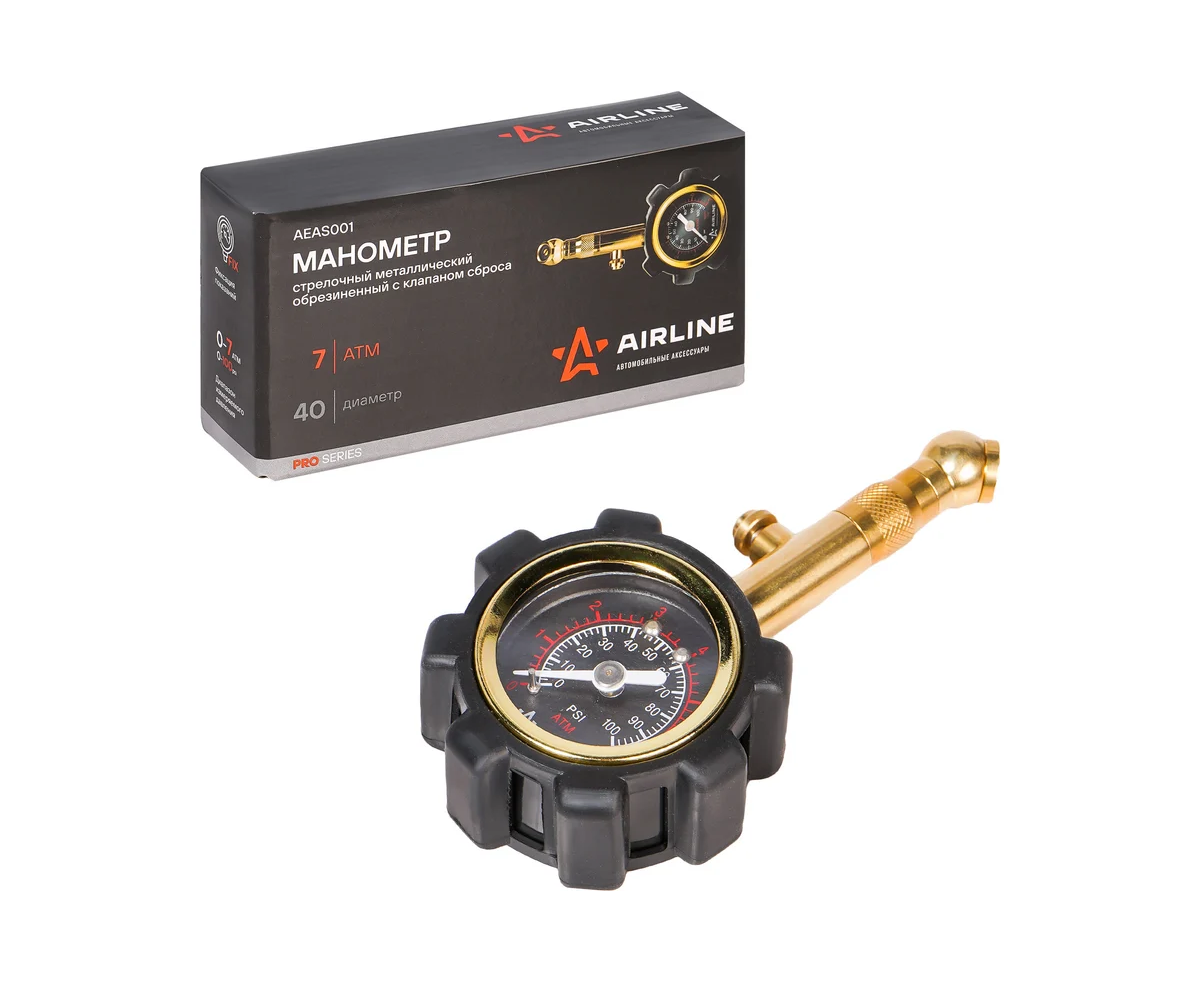 Манометр стрелочный Airline Pro AEAS001 металл. 7Аtm диам. 40мм обрезин. с клапаном сброса
