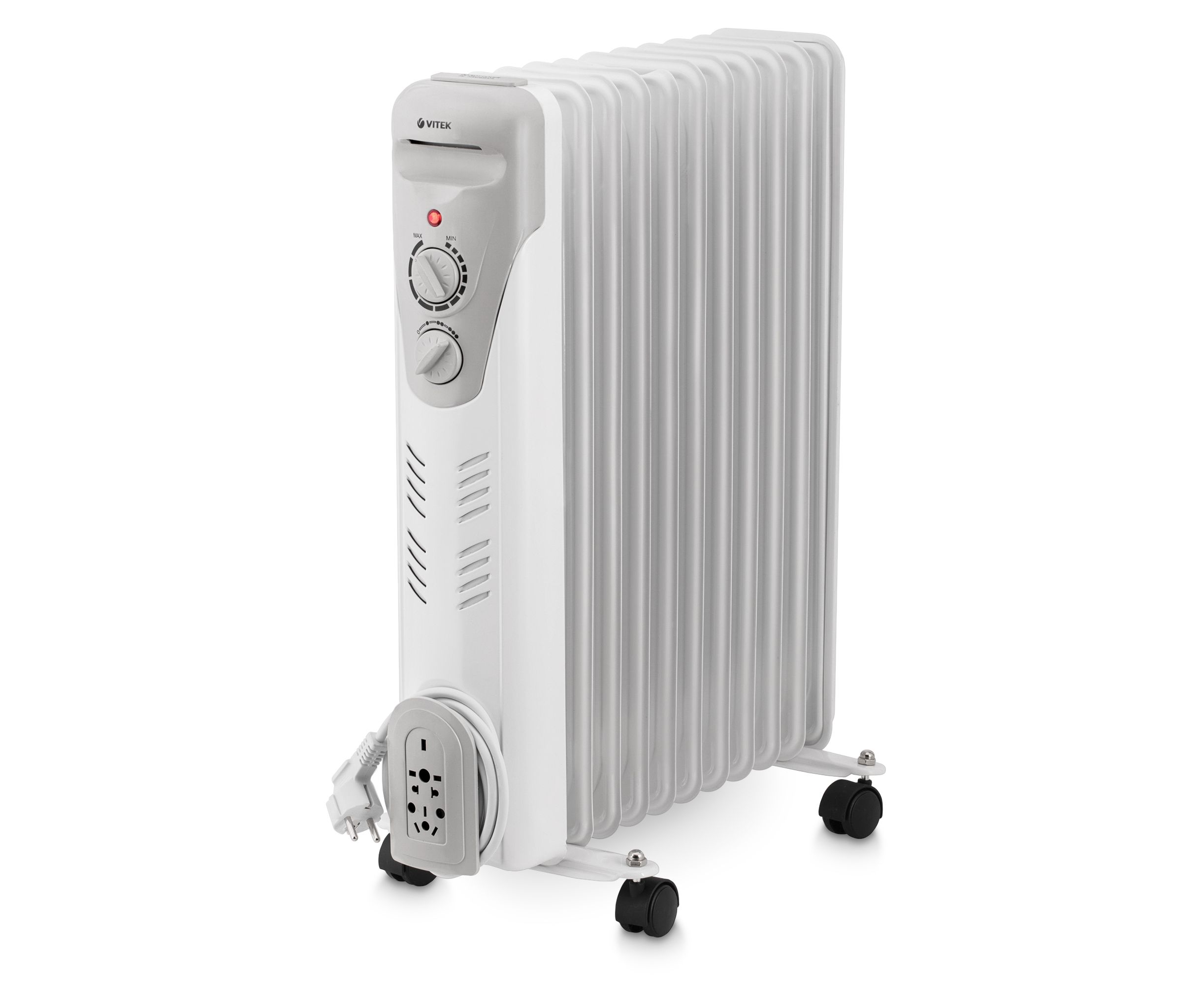 Радиатор VITEK VT-1710 W незаменим в холодное время. Он оснащен 11 секциями и способен обогреть до 25 м2. Благодаря ручке и поворотным колесам обогреватель легко перемещать в разные помещения, а регулятор мощности обеспечит необходимую температуру.