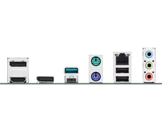 2 x PS/2, 2 x USB 2.0, USB 3.2 Gen2, USB 3.2 Gen2 Type-C, HDMI, 2 x DisplayPort, RJ-45