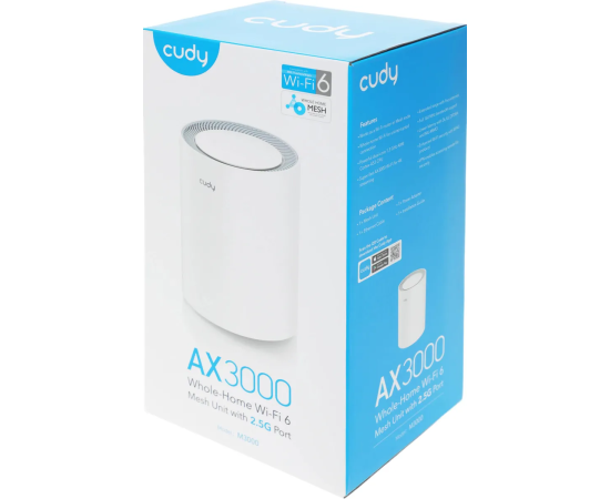 Mesh-система Cudy M3000(1-Pack) V2 2,5-гигабитная Wi-Fi 6 AX3000, 2,4/5ГГц, до 2976Мбит/с, LAN 1x1Гбит/с