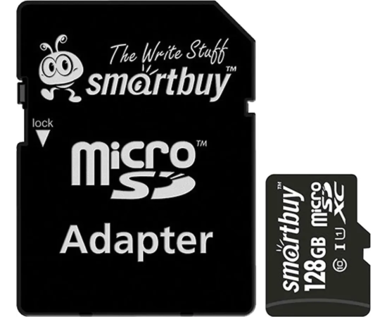 MicroSD 128GB Smart Buy Class 10 UHS-I V10 для видеонаблюдения + SD адаптер