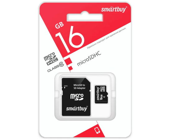 MicroSD 16GB Smart Buy Class 10 UHS-I + SD адаптер