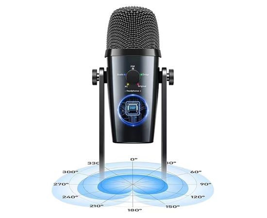 Микрофон универсальный кардиоидный JMARY MC-PW10, Type-C+Bluetooth+AUX, черный