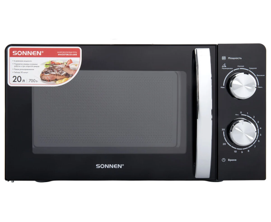 Микроволновая печь SONNEN MW2070BLCR-6MB, 20л, 700Вт, таймер, механическое управление, ручка, черная/хром