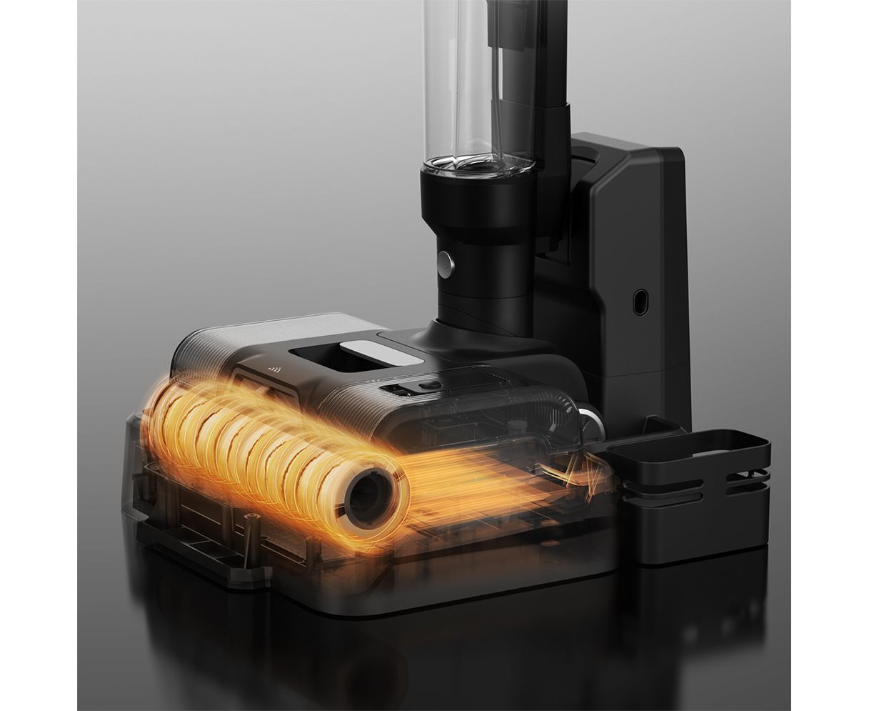 Установите пылесос на базу и запустите режим самоочистки. Щетка начнет вращаться с высокой скоростью, что позволит избавиться от загрязнений и волос. Функция самоочистки избавит вас от необходимости контактировать с загрязненной роликовой щеткой и моющим средством.
