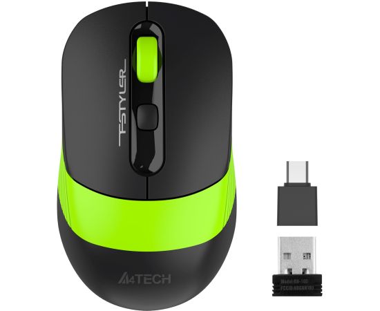 Мышь A4Tech Fstyler FG10CS Air черный/зеленый оптич. 2000dpi silent беспров. USB для ноутбука 4but (